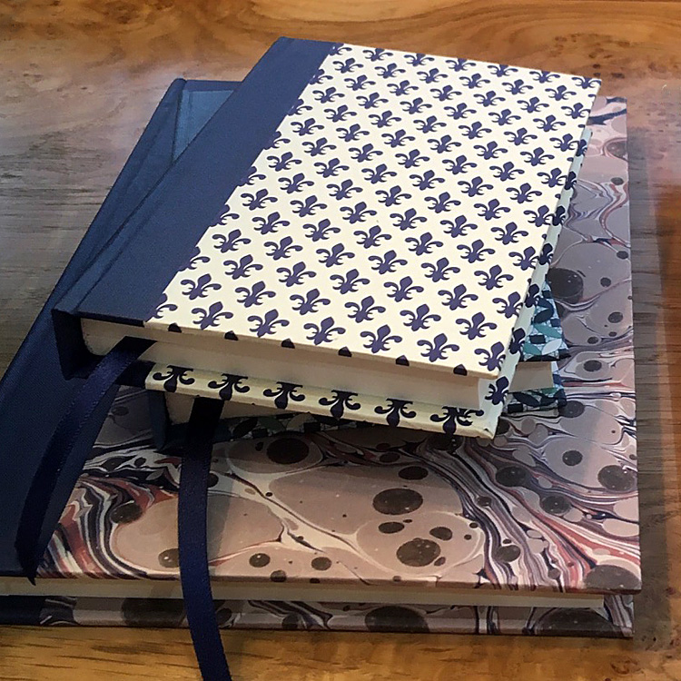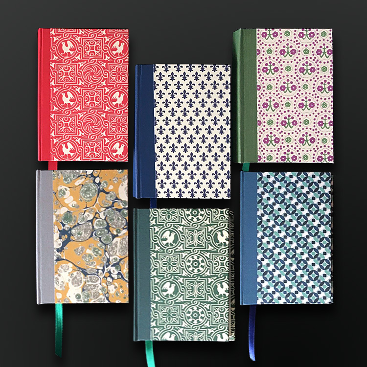 A6 Notebook A pocket sized, hardback notebook with either plain or lined pages, these notebooks are carefully bound with a choice of decorative papers and finished with a ribbon to mark your place. Please see paper gallery for the range of papers available.