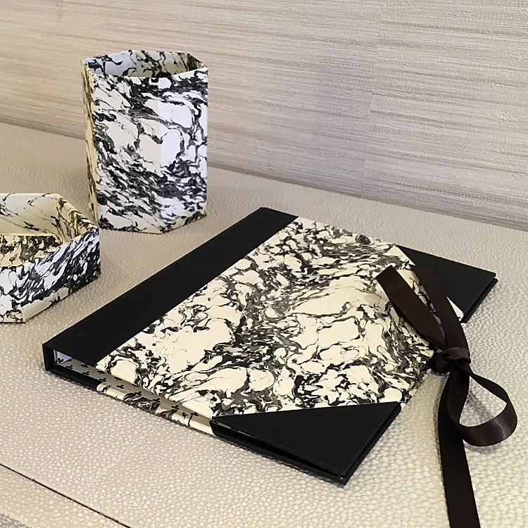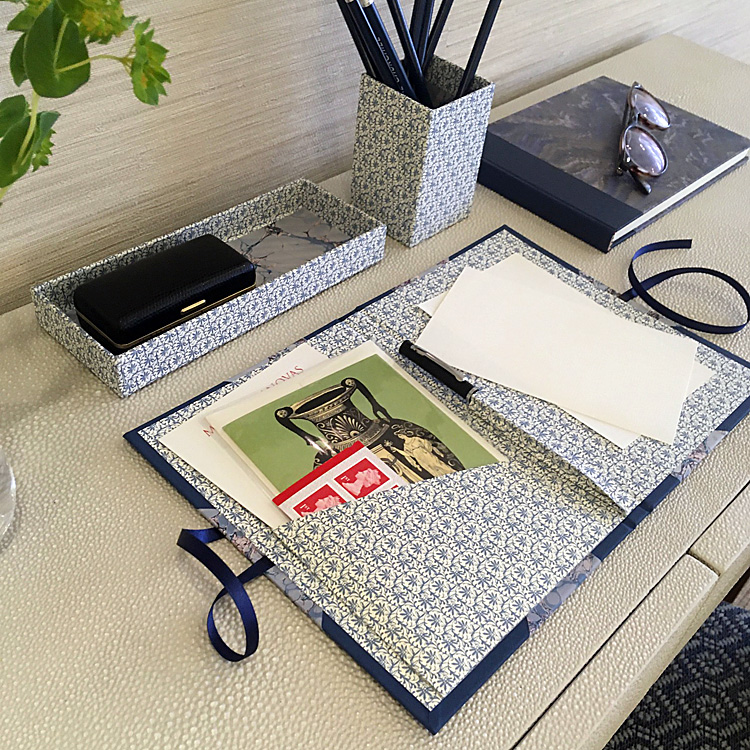 Folio You can keep photos, invitations or design ideas together in style with this meticulously handmade folio. Each folio features book cloth corners, long ribbon ties, a pocket for papers and a pen pocket.