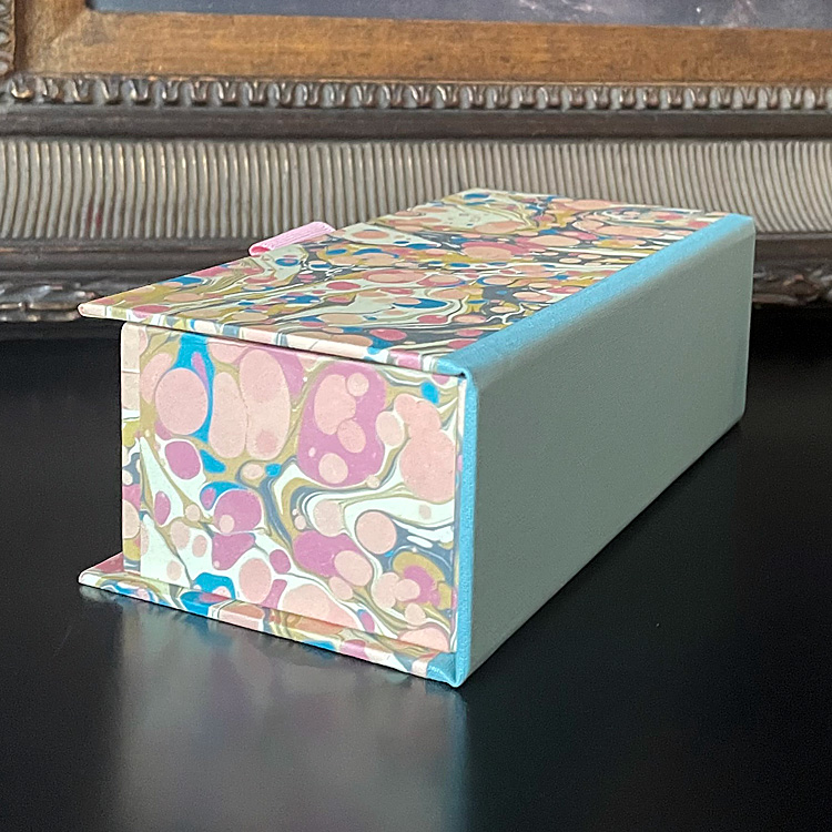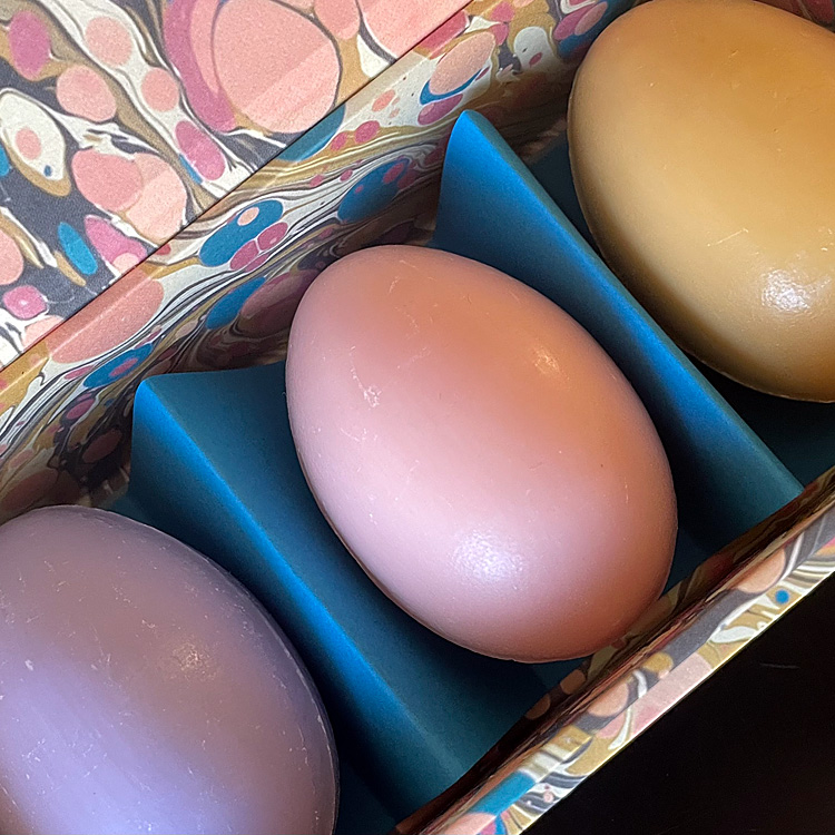 Filled with three wonderfully scented French egg shaped soaps, these soap boxes make a pretty gift idea for Easter. They are made from high quality rigid board, lined inside and out with a choice decorative papers. There’s a coordinating book cloth hinge for maximum elegance and durability and a matching ribbon tab. Please see the paper gallery to see the range of papers available.